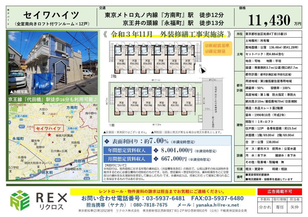 令和3年11月外装修繕工事実施済《1棟アパート》♪